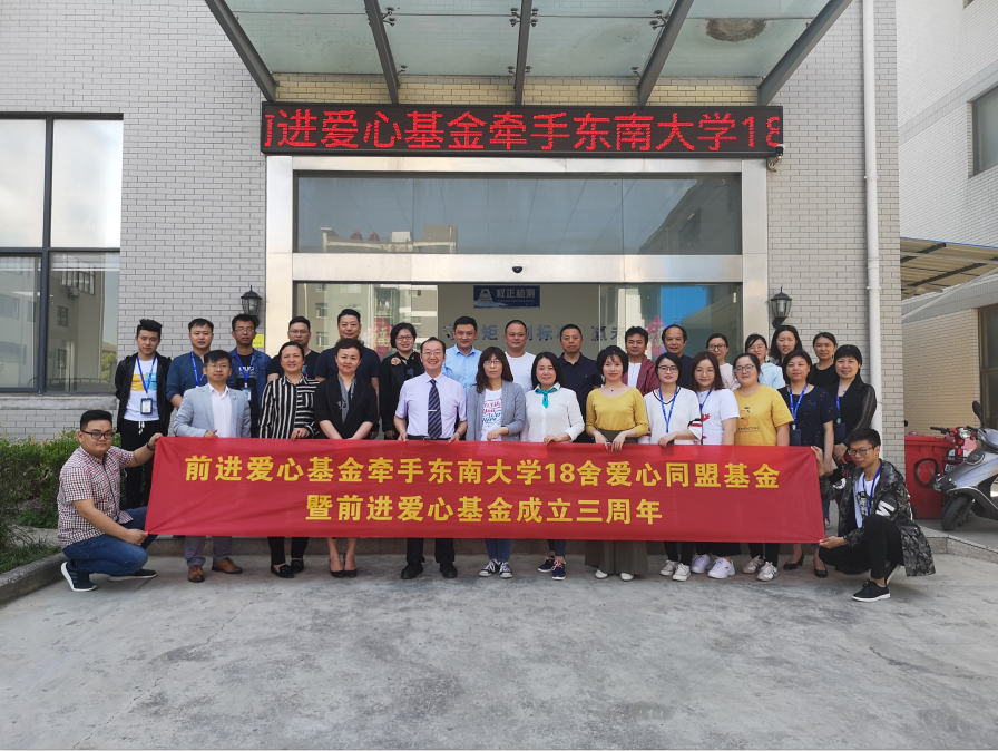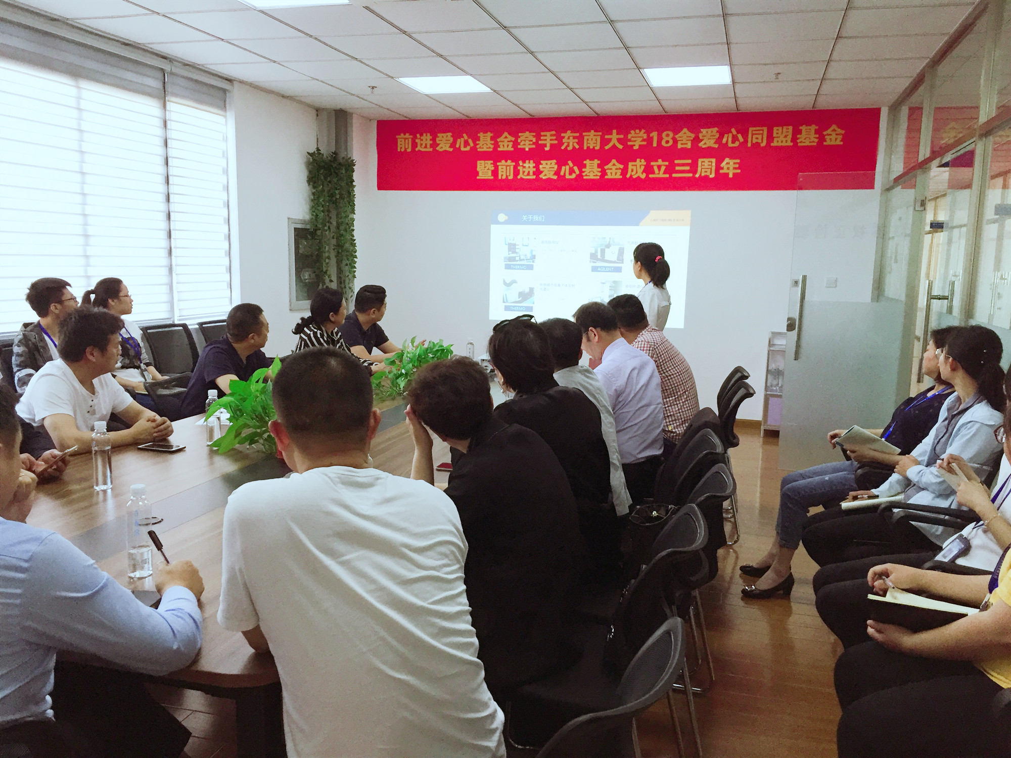 5月20日,前進基金牽手東南大學18舍愛心同盟基金,在江蘇權正檢驗檢測有限公司會議室舉辦前進愛心基金成立三周年活動。