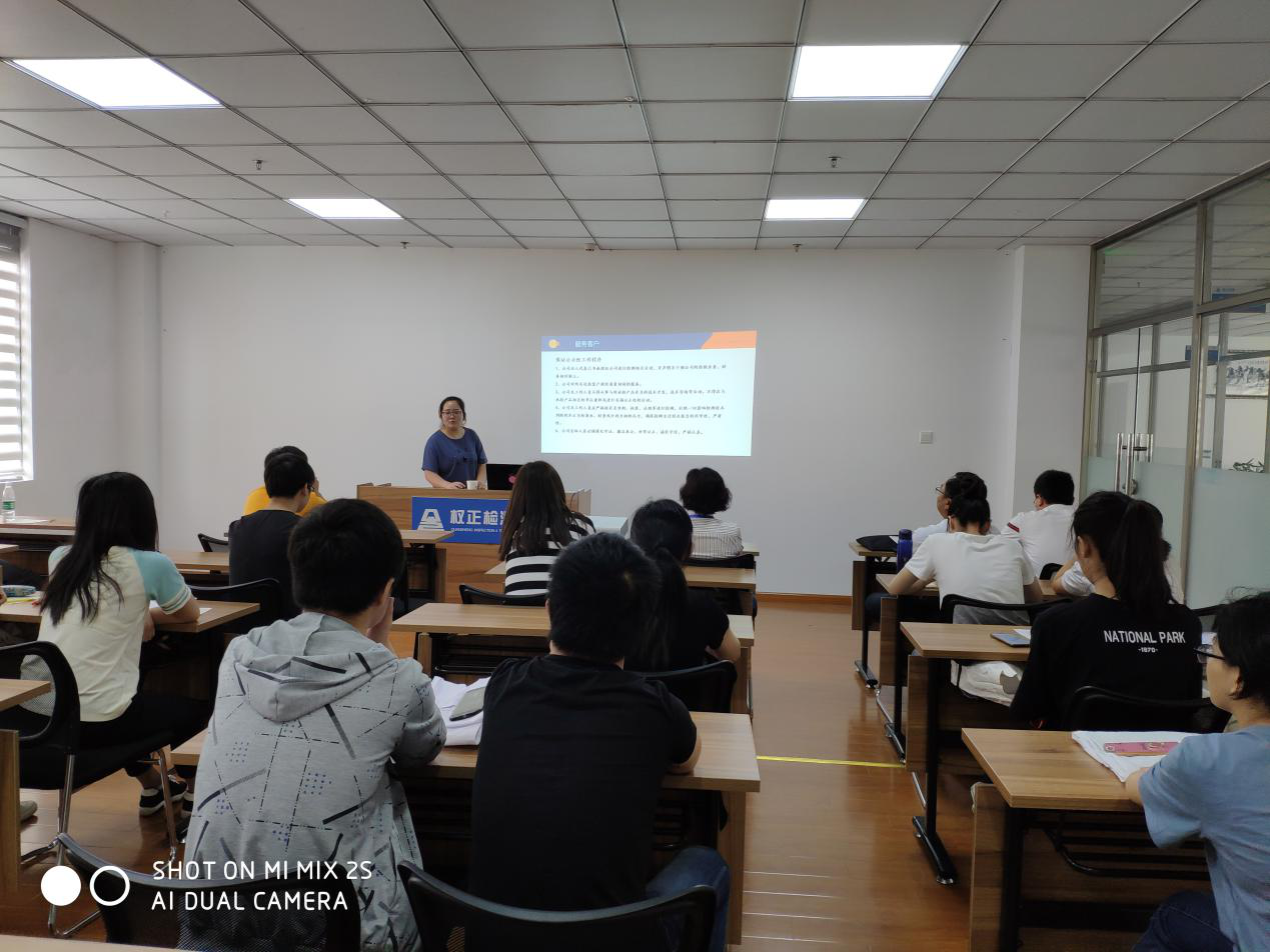 6月10日,學生們接受了為期一天的入職培訓,公司提供了包括簡介、實驗室安全、公司應急預案、常規儀器設備使用等培訓課程。之后,學生們分別融入檢測部、商務部、綜合管理部、質保部,開啟了實習生活。