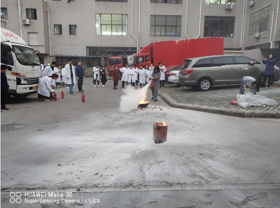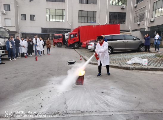 下午四點(diǎn)半,消防演練正式開始。實(shí)驗(yàn)室人員模擬發(fā)現(xiàn)火災(zāi),即刻開啟公司報(bào)警程序。隨著公司HSE總監(jiān)“全體撤離”的通知,公司“應(yīng)急警報(bào)”隨即響起,應(yīng)急疏散演練正式開始。全體人員迅速有序撤離,用消防專用毛巾捂住嘴和鼻子,彎腰撤離出辦公樓直奔集中場(chǎng)所。從拉響警報(bào)至所有員工完成集結(jié),前后僅用時(shí)兩分半。隨后,在本次演練總指揮的指導(dǎo)下,所有員工使用滅火器進(jìn)行了消防滅火演練。